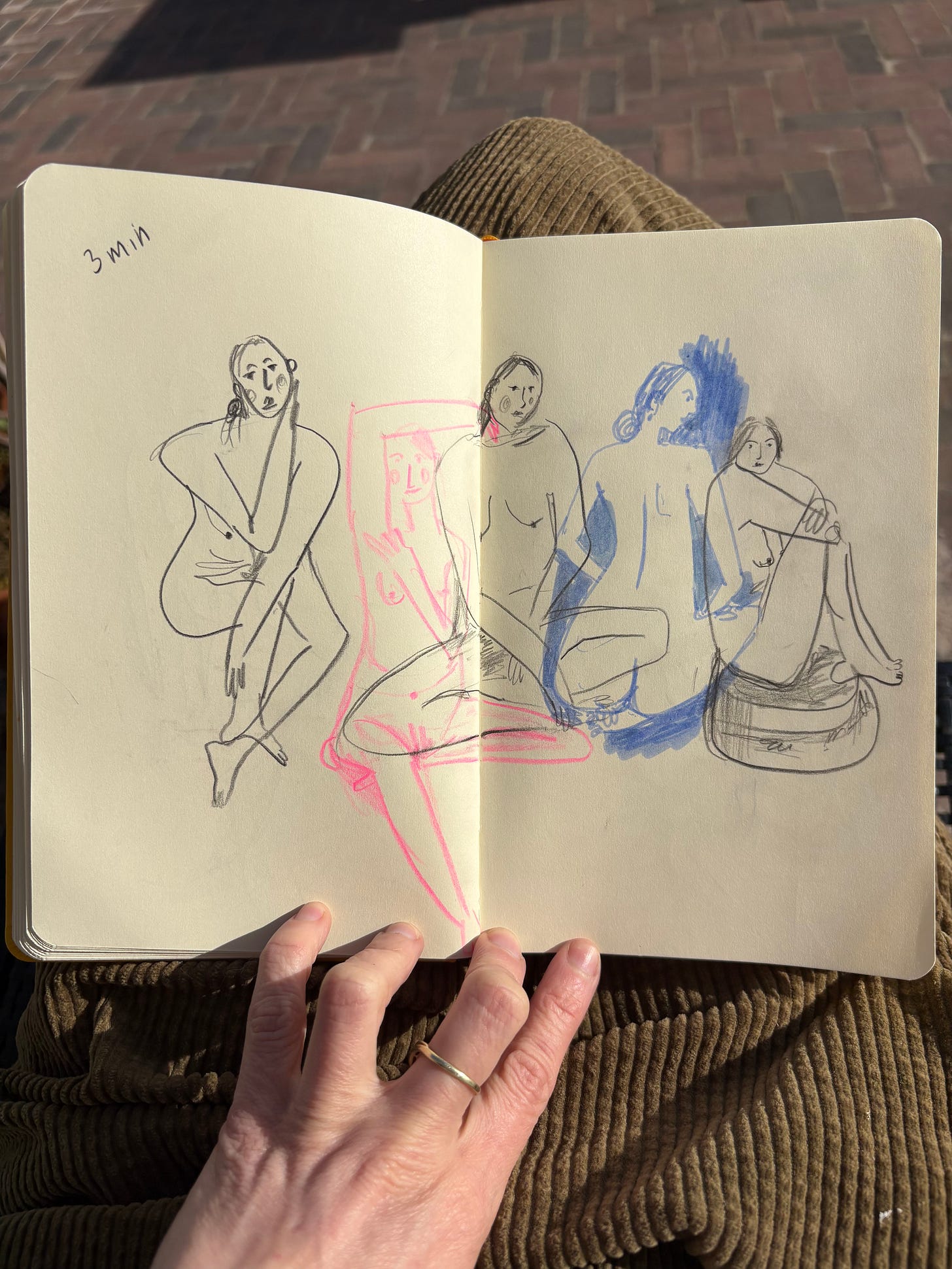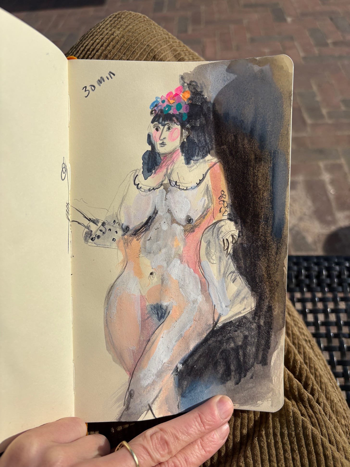 To build my skills from scratch, I’ve started attending the online on Zoom life drawing sessions at Draw Brighton every Wednesday. The fun part is that I’ve joined forces with a few other artists on Instagram, and we’ve created a small accountability group. Each week, some of us join, and this really helps me (and I hope the others too) to show up and do a session every Wednesday. I’m really enjoying this!